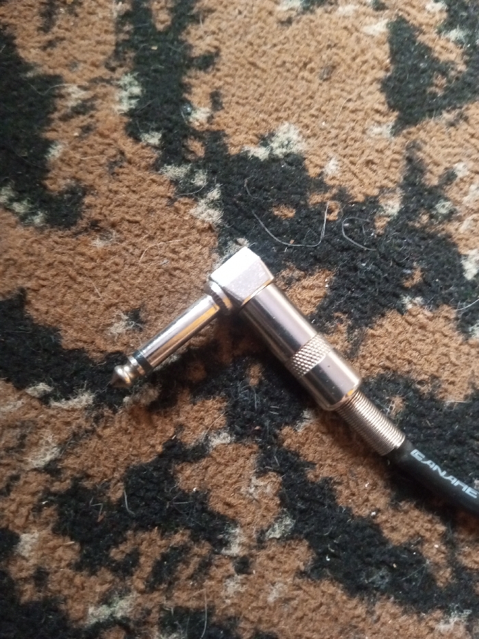 - "A right-angled, metal instrument cable connector sits on a patterned carpet" by FM-2qiQn2, licensed under CC BY 4.0