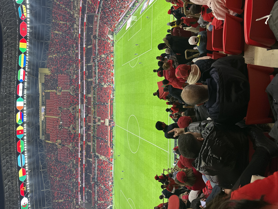 - "A high-angle view depicts a soccer stadium filled with spectators, mostly clad in red, creating a sea of color" by FM-pPInN2, licensed under CC BY 4.0