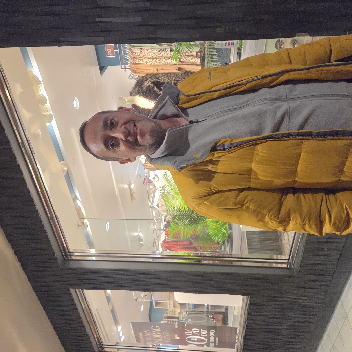 - "A man stands in front of a store window wearing a yellow puffer jacket over a gray hooded sweatshirt" by FM-lhDZW2, licensed under CC BY 4.0