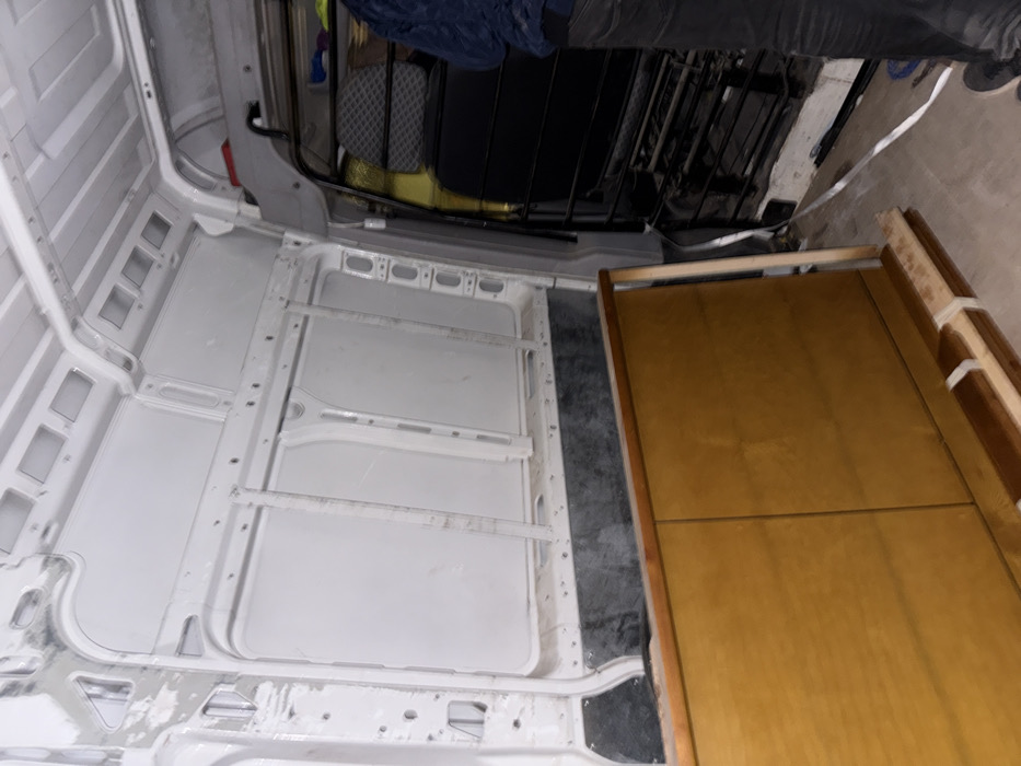 The interior of a van is under construction
