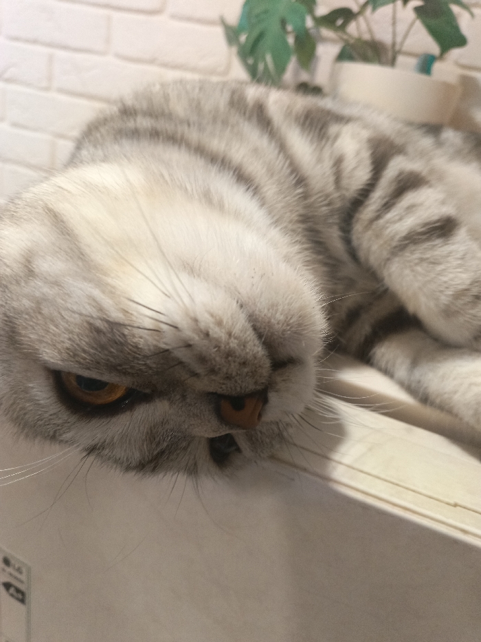 - "A grey tabby cat rests with its head tilted upside down" by FM-Zwv733, licensed under CC BY 4.0