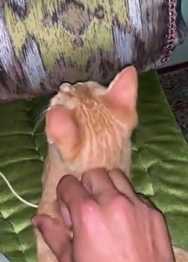 - "Here's a detailed description of the video: A person's hand is shown petting the back of the neck of an orange cat" by FM-db0142, licensed under CC BY 4.0