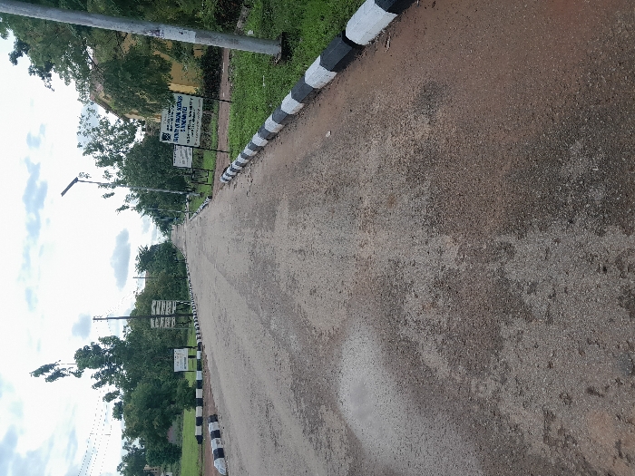 The image displays an asphalt road at the permanent site of Ebonyi State University in Ezzamgbo, Ebonyi State, Nigeria