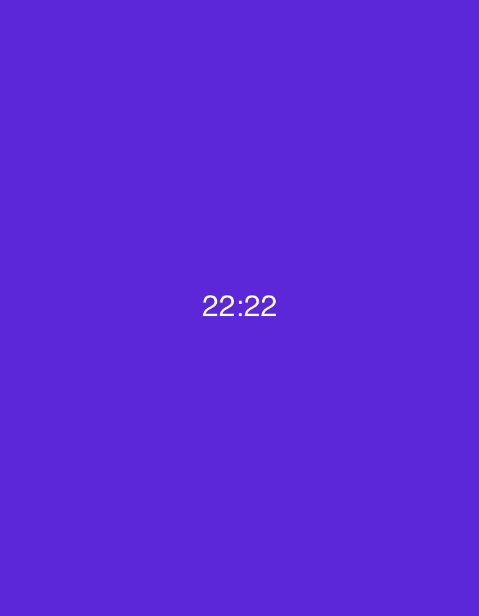 The scene displays a uniform, solid purple background. Centered on this background, the white digital text "22:22" is presented. No individuals, specific objects, or environmental features are discernible within the image. This scene is situated in the city of Kozloduy, Bulgaria.