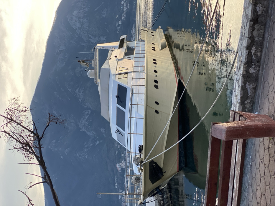 - "A large, light beige and white motor yacht is moored in calm water along the Bay of Kotor in Dobrota, Montenegro" by FM-gzVUI2, licensed under CC BY 4.0