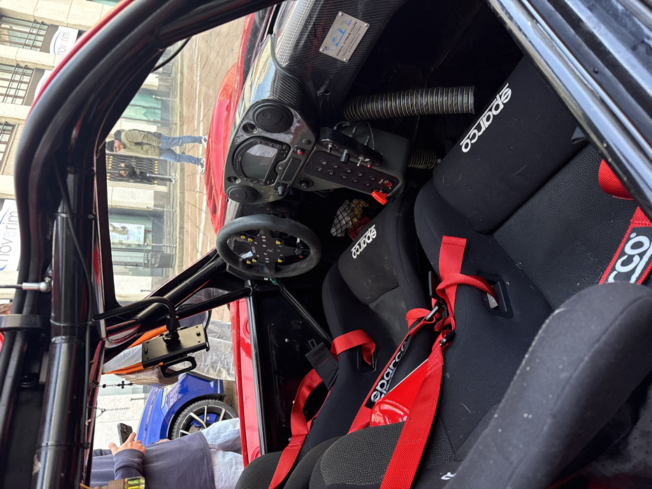 - "The image depicts the interior and immediate surroundings of a red, open-top, two-seater track car, viewed from just outside the driver's side" by FM-UaKXZ2, licensed under CC BY 4.0