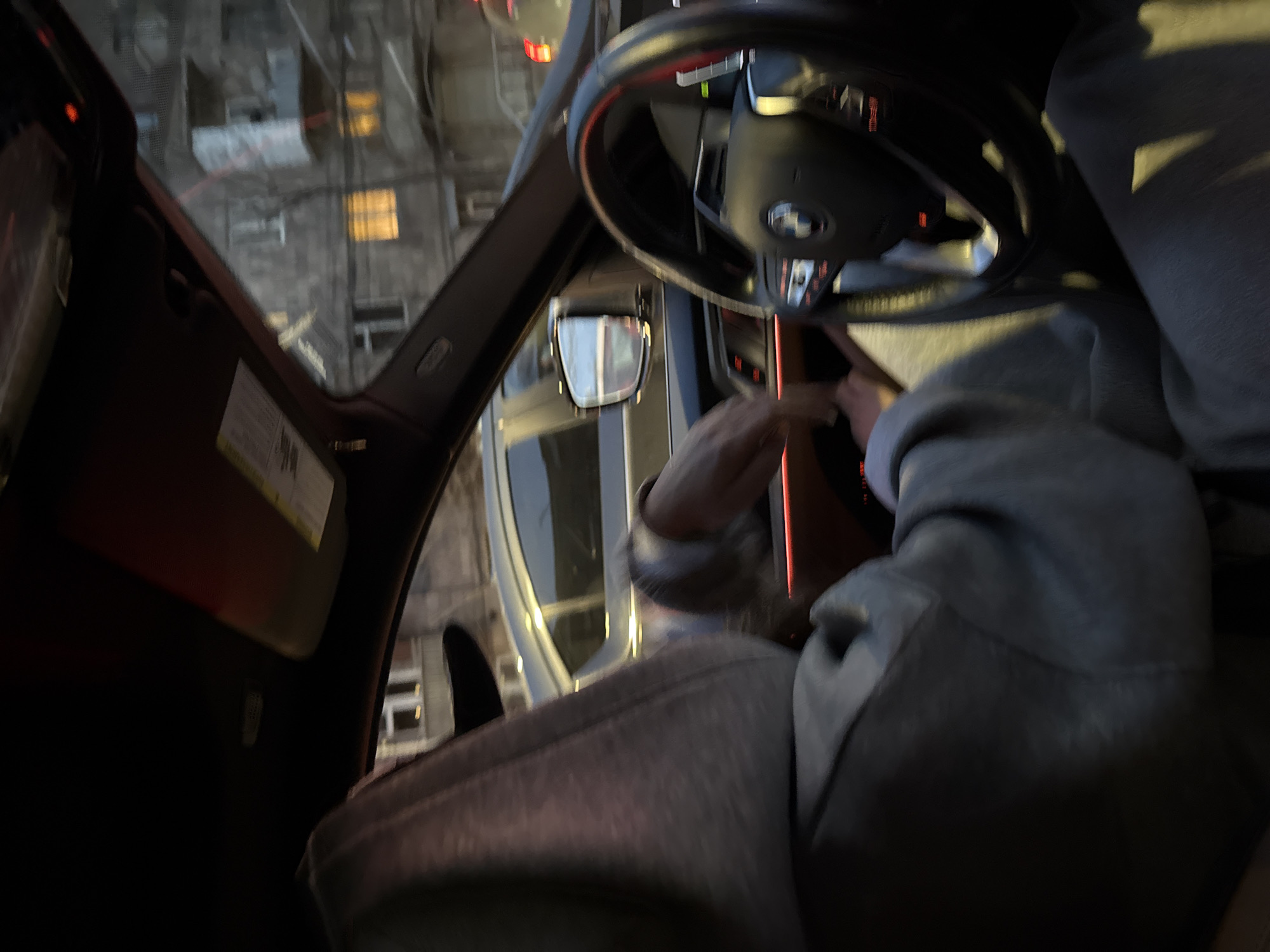 - "A view from inside a vehicle, possibly a car, features a person in a grey tracksuit behind the steering wheel" by FM-Wzevo2, licensed under CC BY 4.0