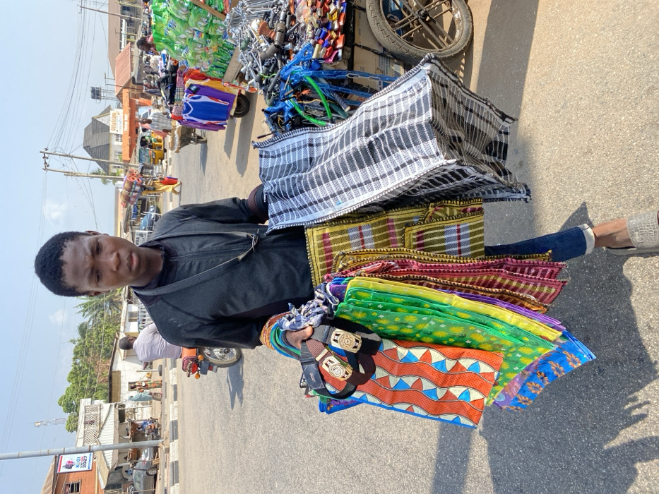 An outdoor scene in Lokoja, Kogi State, Nigeria, is captured under clear daylight conditions