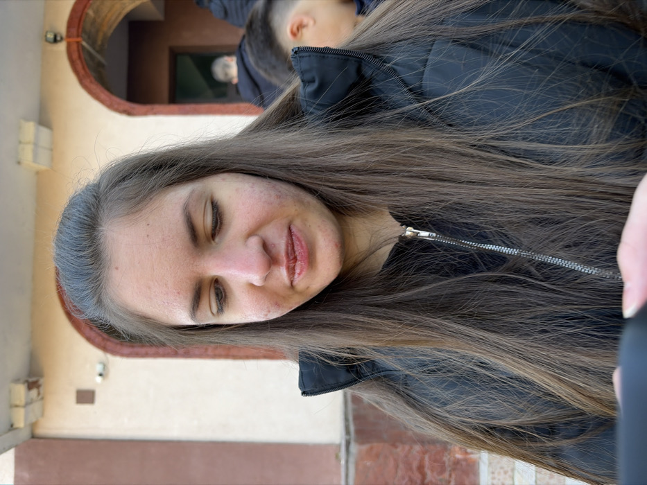 The image portrays a young female positioned in the foreground, located in Cherven Bryag, Bulgaria