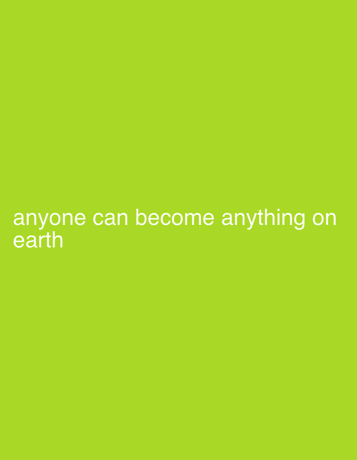 This image, presented in the context of Adankolo, Nigeria, displays a graphic composition. The background is a solid, uniform lime green color. White sans-serif text is positioned in the lower-left quadrant of the frame, stating: "anyone can become anything on earth". There are no visible people, discernible objects other than the text, actions, interactions, or specific environmental features of Adankolo, Nigeria identifiable within this digital graphic.