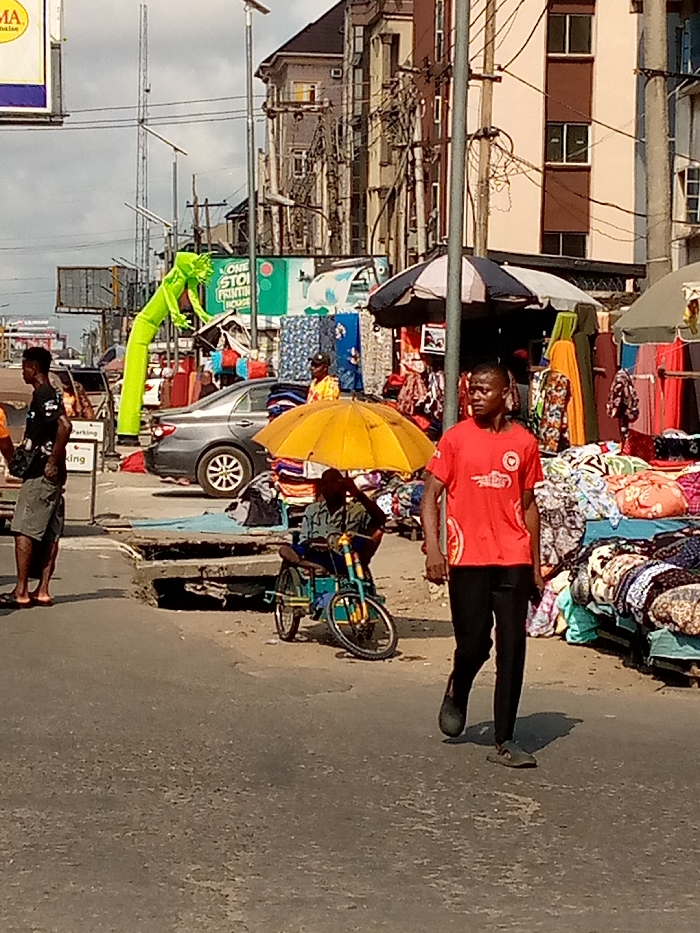 - "The scene depicts a bustling commercial street in Aba, Nigeria, under an overcast sky" by FM-9Q7kt2, licensed under CC BY 4.0