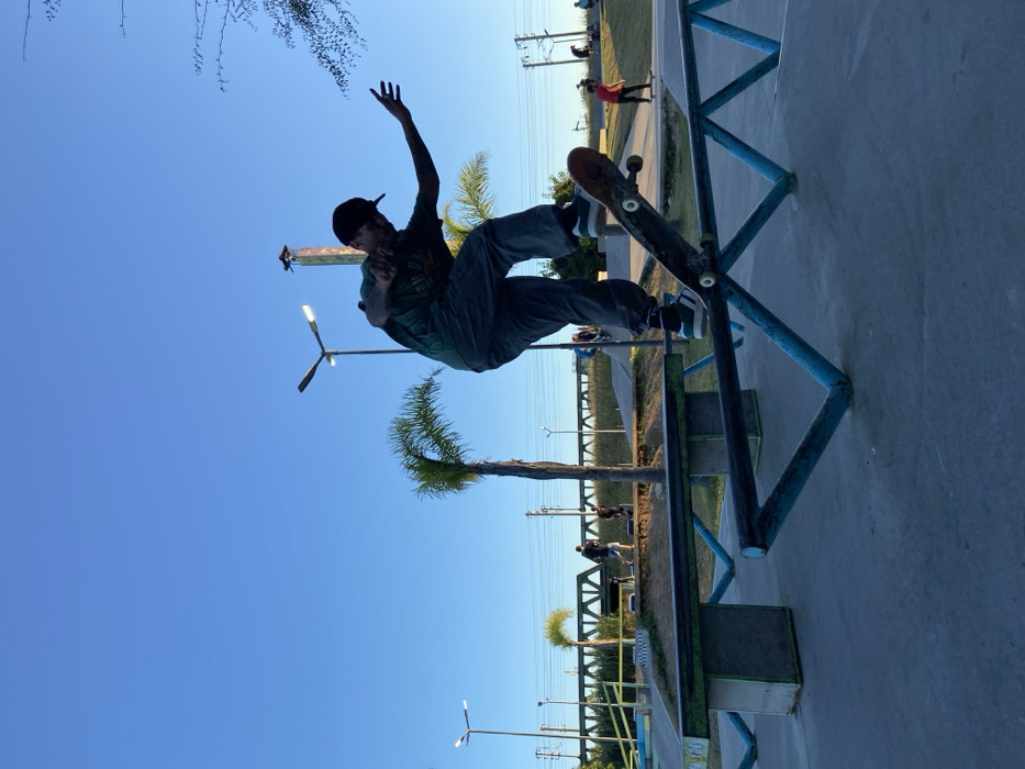 - "A skateboarder performs a trick, seemingly balancing on a blue rail in a skatepark" by FM-faLbl2, licensed under CC BY 4.0