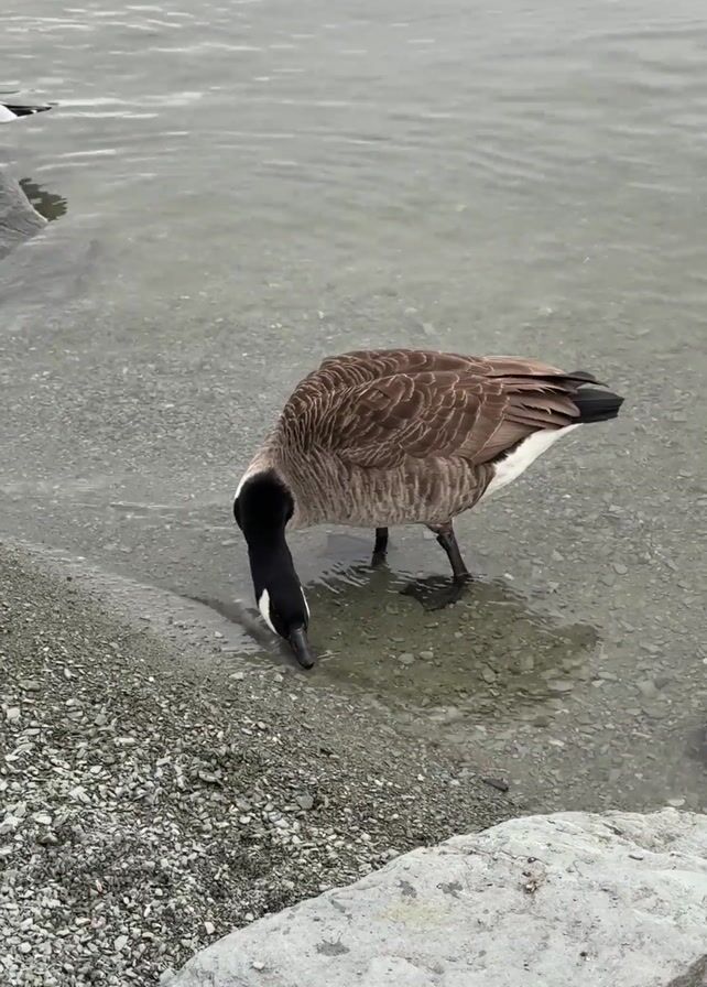 - "Canada goose standing in shallow, clear water next to a rocky shore" by FM-FG1Ow2, licensed under CC BY 4.0