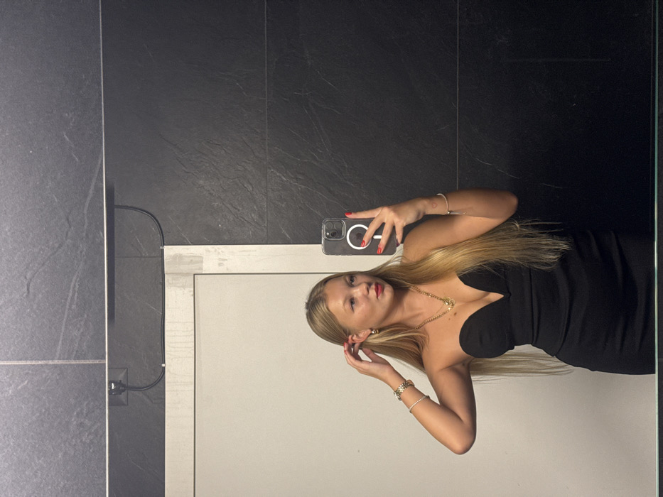 - "A young woman with long blonde hair and fair skin is depicted taking a mirror selfie in an interior space" by FM-v1KIi2, licensed under CC BY 4.0