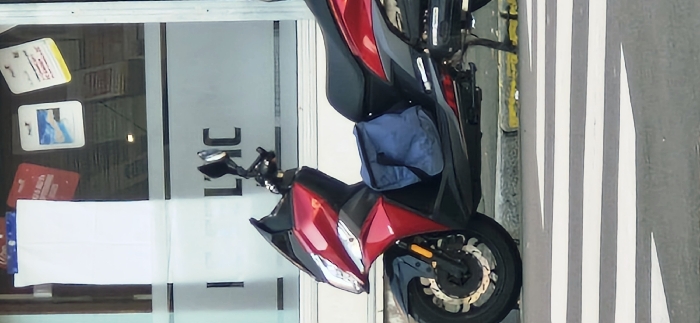 - "The image displays a red and black maxi-scooter parked on a sidewalk in Lens, France" by FM-uLzcF2, licensed under CC BY 4.0