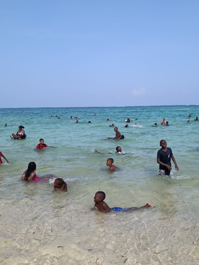 - "A sunny beach scene shows many people, mostly children, enjoying the shallow, clear ocean water" by FM-d4PGJ2, licensed under CC BY 4.0
