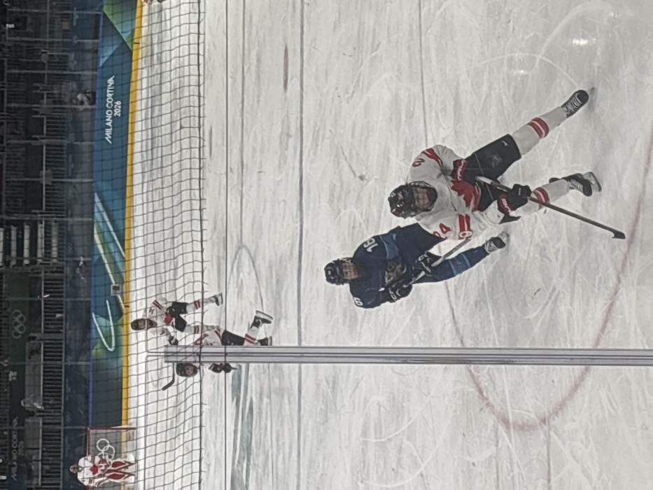 - "The image depicts an ice hockey game or practice in an indoor arena located in Rho, Italy, as indicated by a prominent "MILANO CORTINA 2026" banner in the background, accompanied by the Olympic rings logo" by FM-zz3GW2, licensed under CC BY 4.0