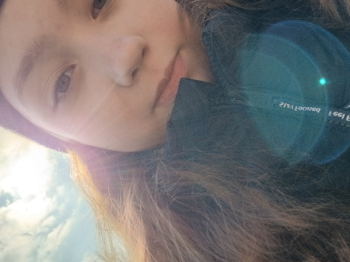 A close-up outdoor portrait, consistent with a selfie photograph, depicts a young female individual