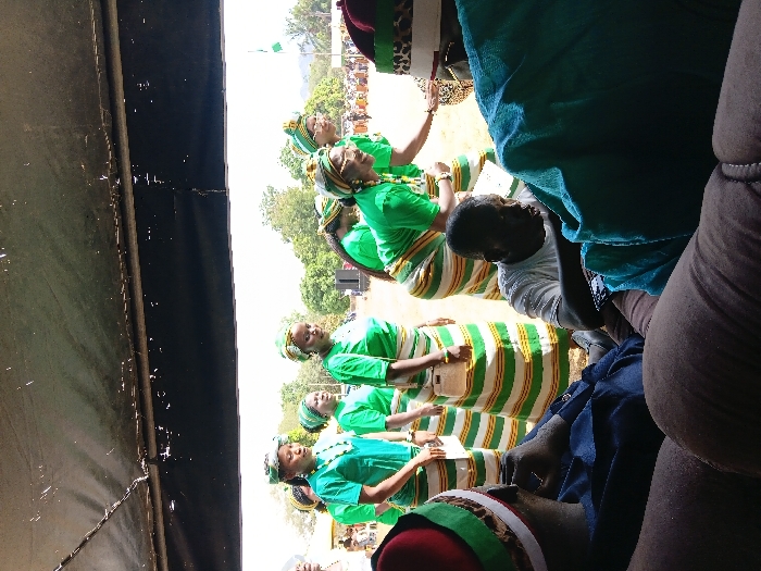 The image captures an outdoor event in Manchok, Nigeria, observed from beneath a dark canopy