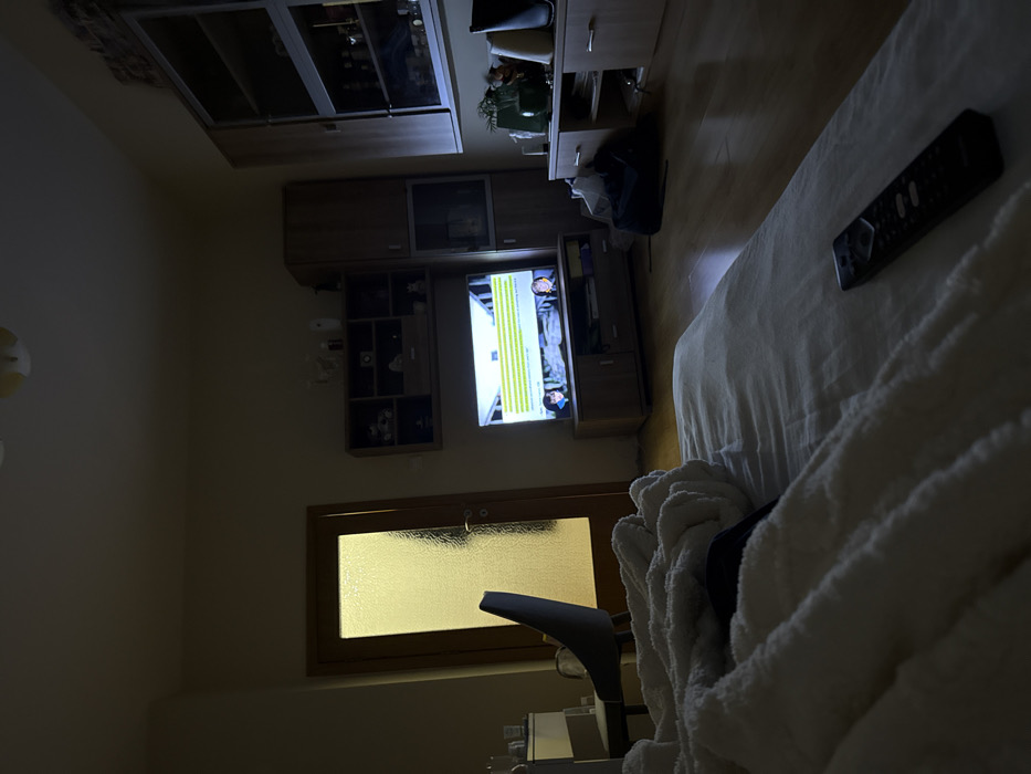 - "An interior photograph depicts a dimly lit domestic living space in Plovdiv, Bulgaria, captured from a low vantage point, likely from a bed or sofa" by FM-Jt09G2, licensed under CC BY 4.0
