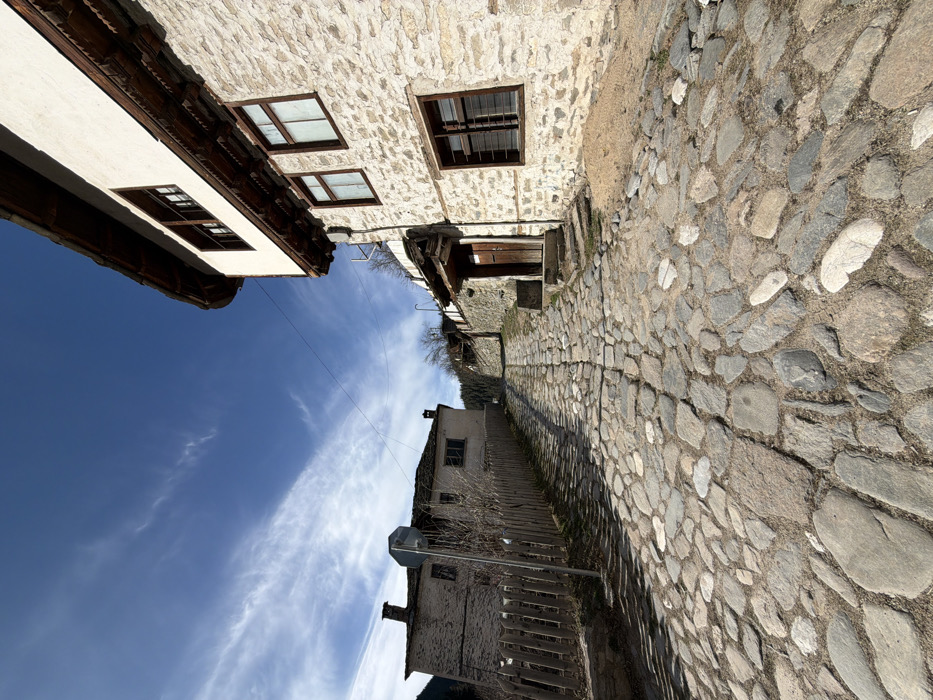 - "The image displays a narrow, ascending cobblestone street in Shiroka Laka, Bulgaria, under a clear blue sky with sparse white cirrus clouds" by FM-3q1Os1, licensed under CC BY 4.0