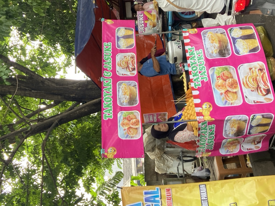 - "A pink banner advertises "Takoyaki & Jasuke" with pictures of the food items" by FM-htxI33, licensed under CC BY 4.0