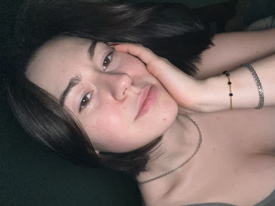 - "A woman with dark hair and fair skin rests her cheek on her hand" by FM-CMDbi2, licensed under CC BY 4.0