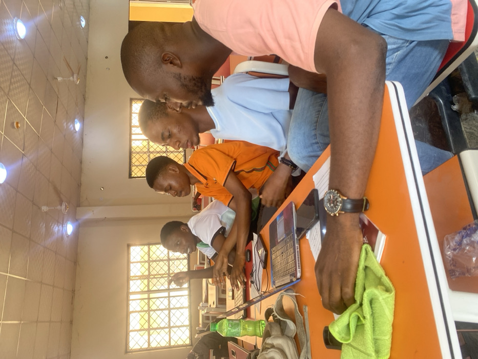 The image depicts an indoor educational or training environment in an unknown city in Nigeria
