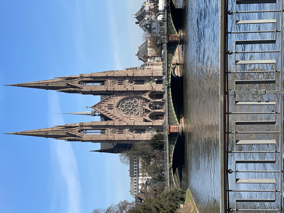- "The image displays a clear, wide shot of the Église Saint-Paul (Saint Paul's Church) in Strasbourg, France, positioned on an island beyond the Ill River" by FM-fSpHy2, licensed under CC BY 4.0