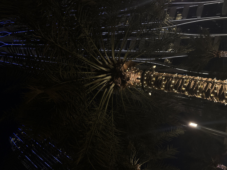 - "A low-angle shot showcases palm trees at night, their fronds silhouetted against the dark sky" by FM-lgQ922, licensed under CC BY 4.0
