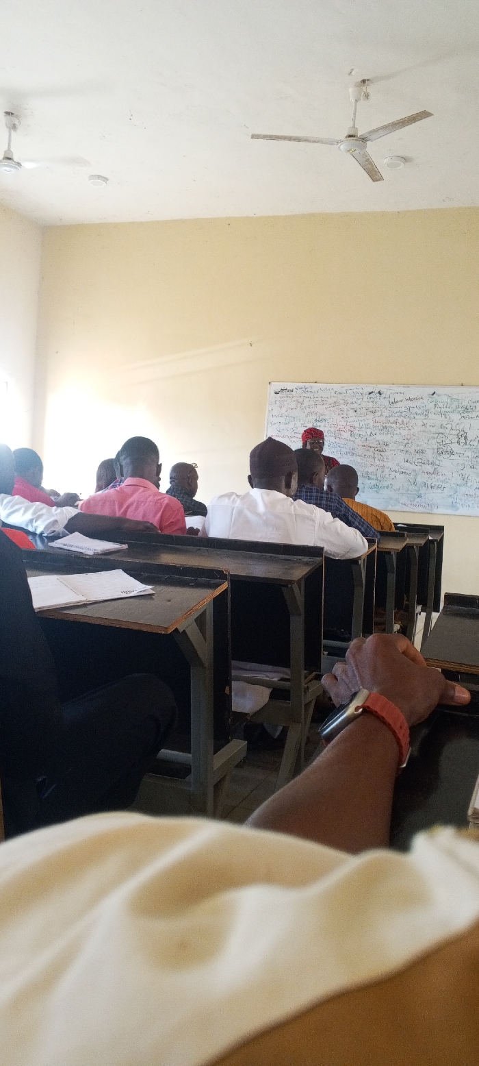 The image captures an indoor classroom or lecture hall in Unknown, Unknown, from the perspective of a seated individual in a front row