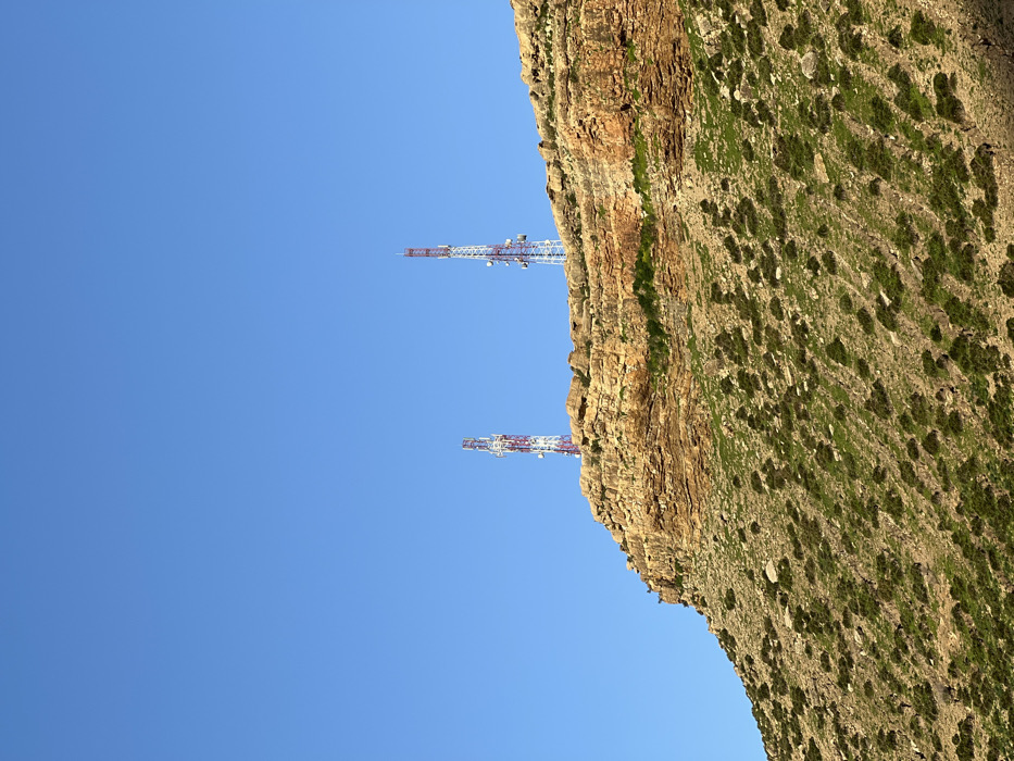 - "Two communication towers stand against a clear blue sky, positioned near the edge of a rocky cliff face" by FM-1AGZJ2, licensed under CC BY 4.0