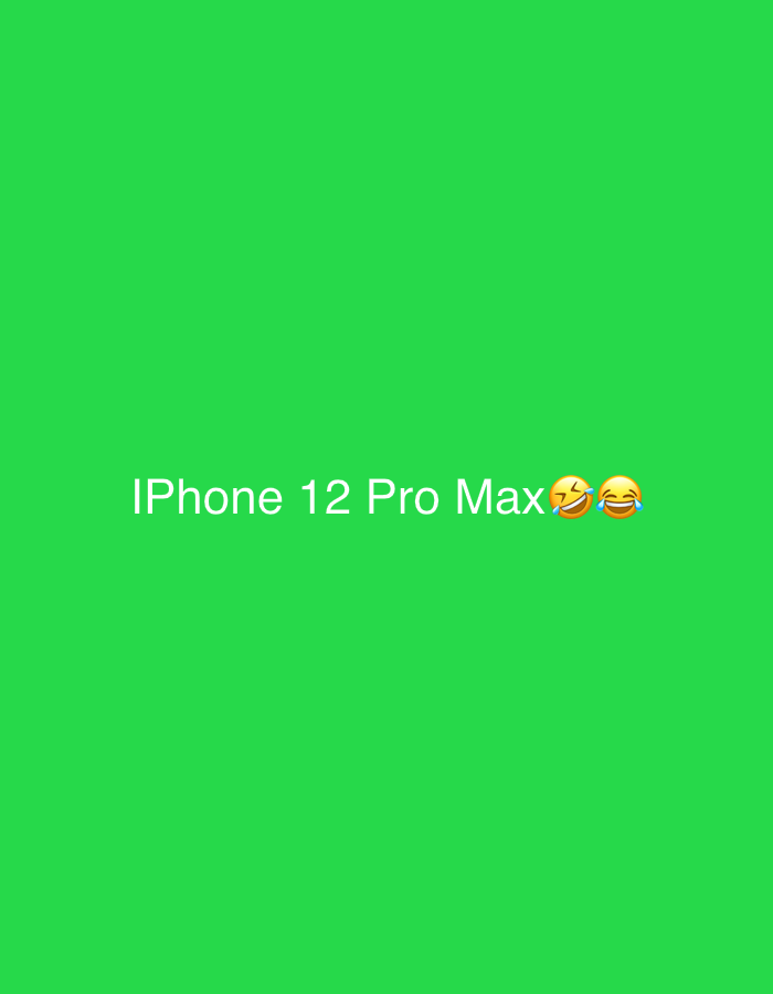 The image displays the text "IPhone 12 Pro Max" in white, followed by two emojis. The first emoji is a face with tears of joy, and the second is a laughing face with tears. The background color is a solid, vibrant green. The text and emojis are positioned centrally in the lower half of the frame.