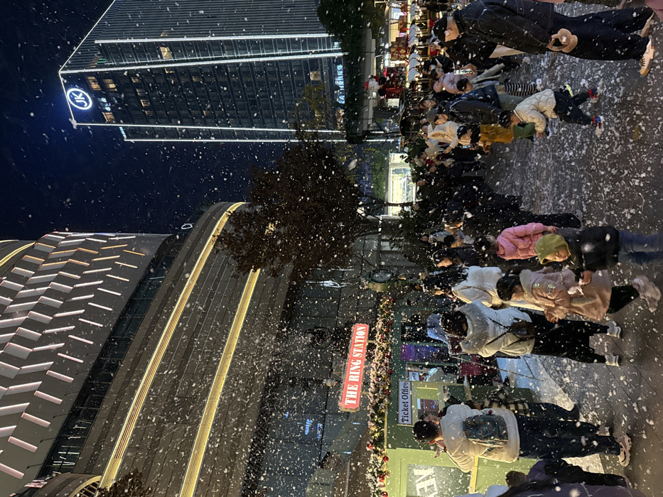 - "The scene depicts an outdoor urban plaza at night in Liangjiang, China, during an artificial snowfall event" by FM-K0Kp62, licensed under CC BY 4.0