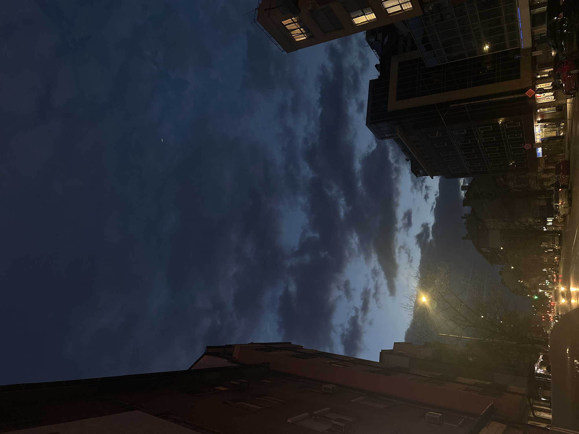 - "The image depicts a low-angle view of a city street in Sofia, Bulgaria, at dusk or night, under an overcast sky dominated by dark blue-grey clouds" by FM-DkVH62, licensed under CC BY 4.0