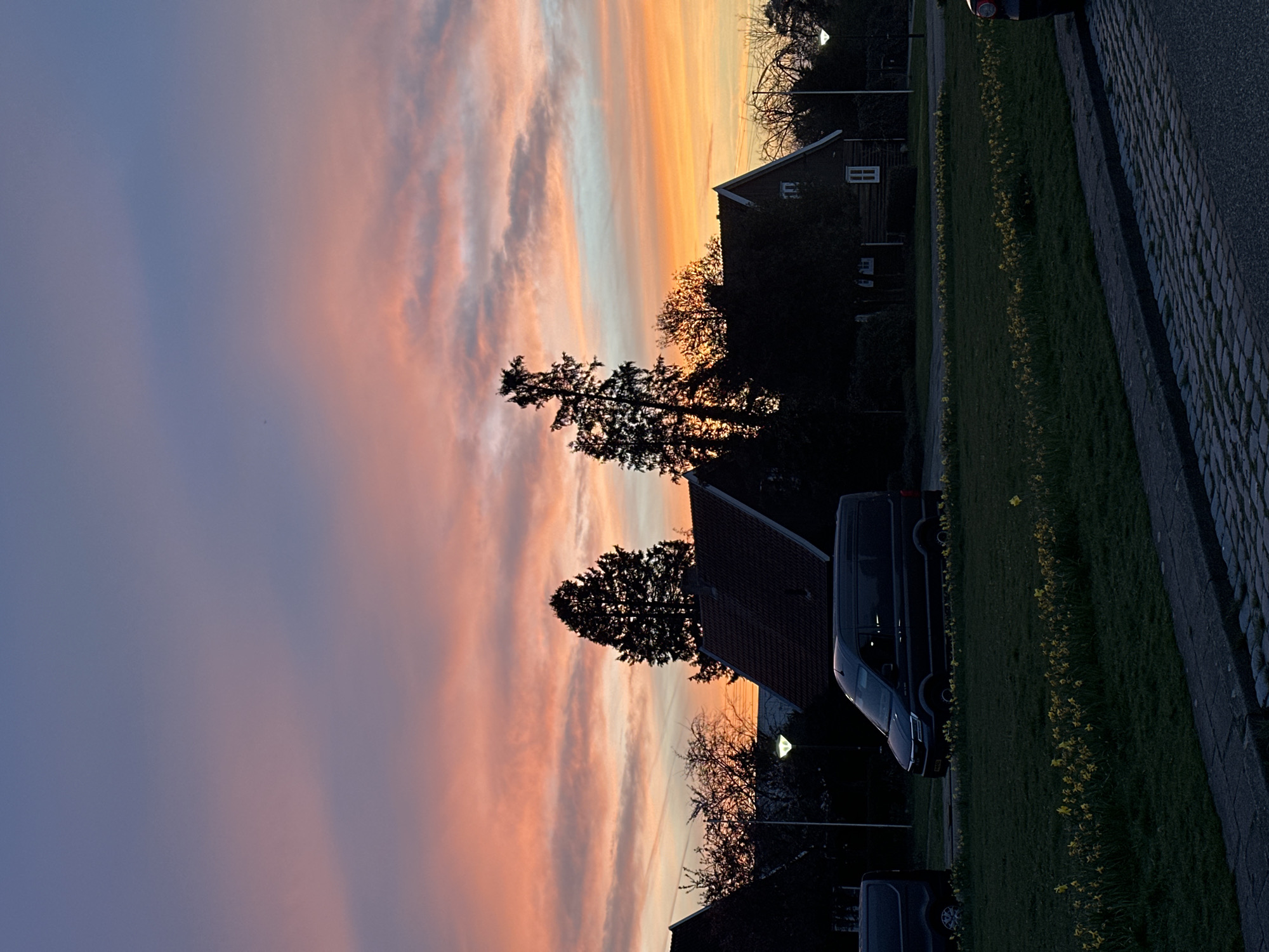 - "The image depicts a residential street scene in Geldrop, Netherlands, at either sunrise or sunset, characterized by a vibrant, multi-hued sky transitioning from deep blue and purple at the top to pink, orange, and yellow near the horizon, with scattered clouds" by FM-bXS1G2, licensed under CC BY 4.0