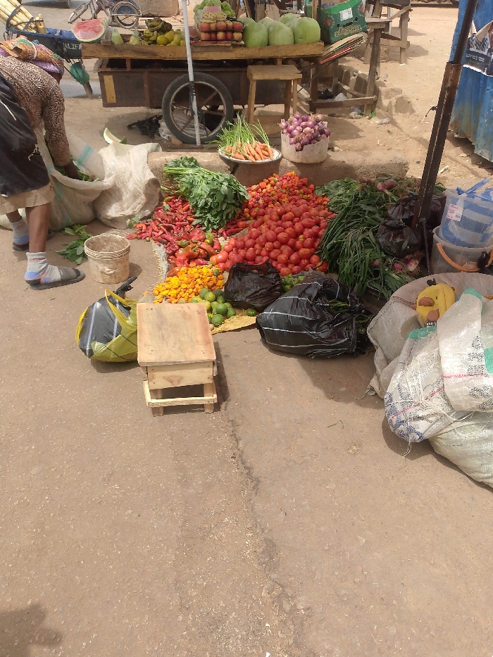 - "An outdoor market scene in Jos, Nigeria, depicts a variety of fresh produce displayed directly on a dusty, unpaved ground surface under bright daylight" by FM-eBDcX2, licensed under CC BY 4.0