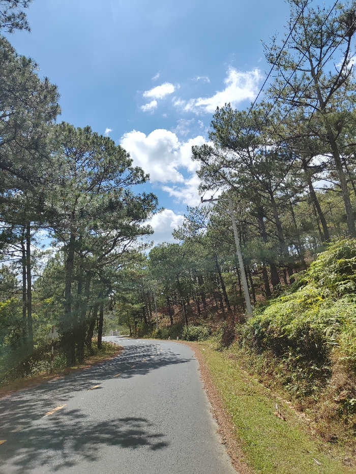 - "The image displays a winding asphalt road traversing a dense evergreen forest in Lán Tranh, Vietnam, under a clear blue sky with scattered white cumulus clouds" by FM-WroXJ3, licensed under CC BY 4.0