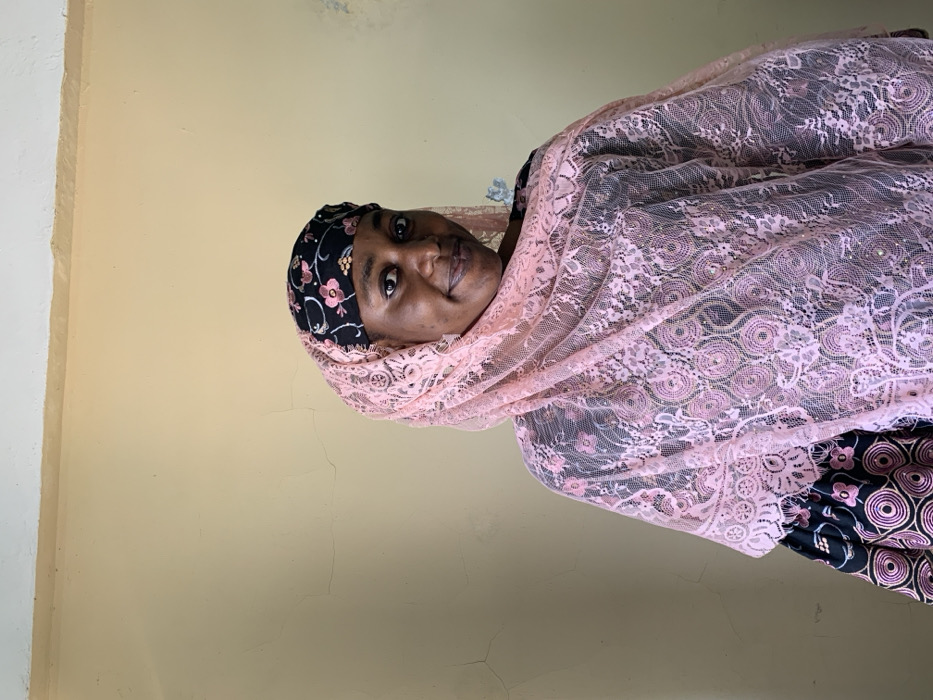 A single adult female, located in Jos, Nigeria, is depicted in a head-and-torso portrait against a plain, light yellow interior wall
