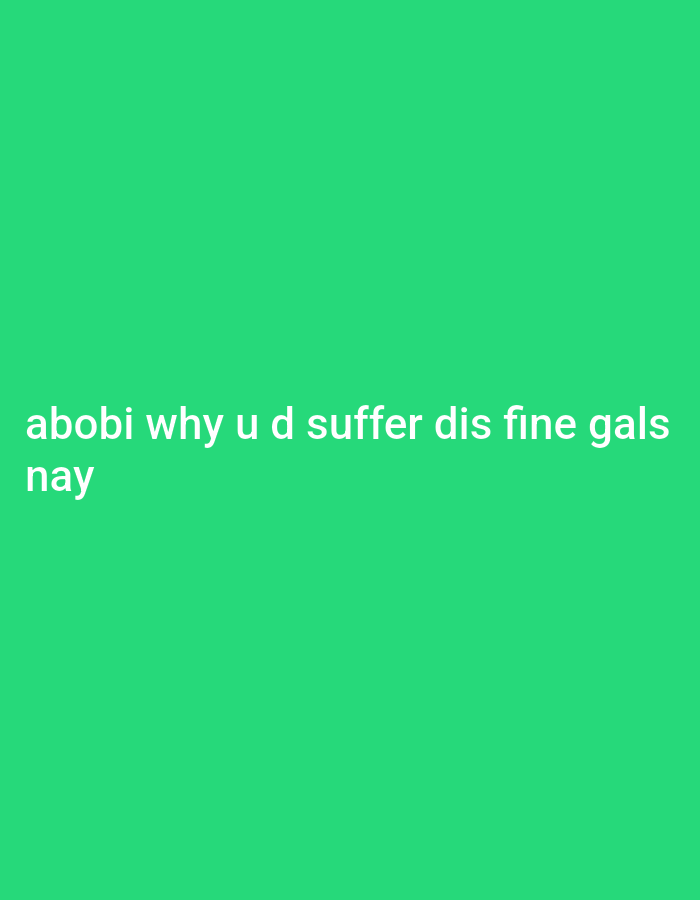 The scene, located in the city of Akwanga, Nigeria, consists of a digital graphic. The image features a solid, uniform emerald green background. White, sans-serif text is centrally aligned and positioned in the lower mid-section of the frame, spelling out the phrase: "abobi why u d suffer dis fine gals nay". No individuals, objects beyond the text, actions, or additional environmental details are present or discernible within this visual composition.