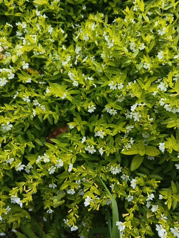 - "The image displays a dense, verdant shrub covered profusely with small white flowers, situated in Thành phố Kon Tum, Vietnam" by FM-dMT6c2, licensed under CC BY 4.0
