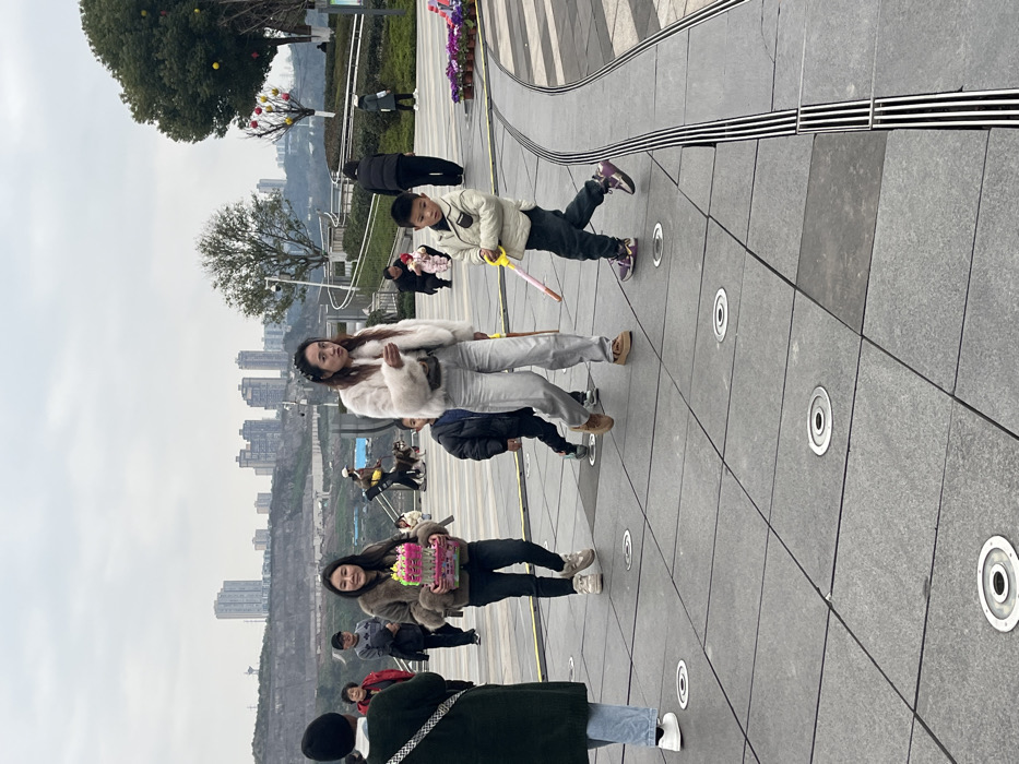 A public outdoor area in Banan, China, is depicted under an overcast sky