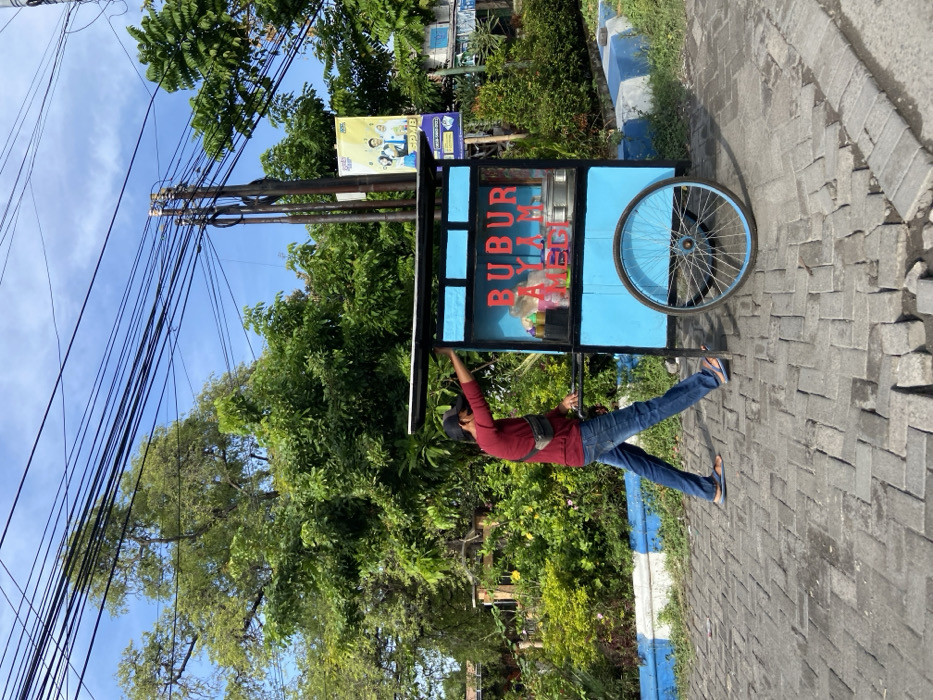 - "A male individual pushes a light blue, two-wheeled food cart across a grey brick-paved path in Balonggabus, Indonesia" by FM-htxI33, licensed under CC BY 4.0