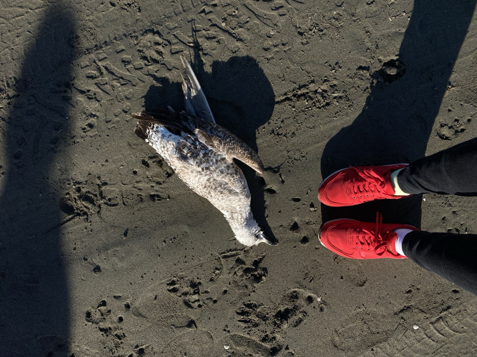 - "An overhead photograph captures a deceased avian subject on dark, fine-grained sand, likely a beach, in Donji Štoj, Montenegro" by FM-cg2IU2, licensed under CC BY 4.0