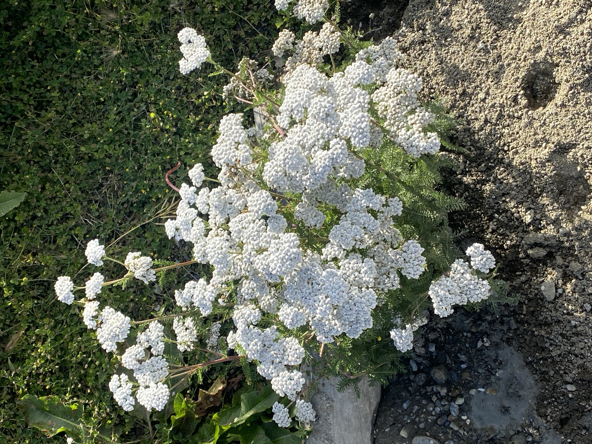 - "The image, taken in Ushuaia, Argentina, depicts an overhead view of a dense cluster of white Yarrow (Achillea millefolium) growing on varied terrain under bright sunlight" by FM-vptCs2, licensed under CC BY 4.0
