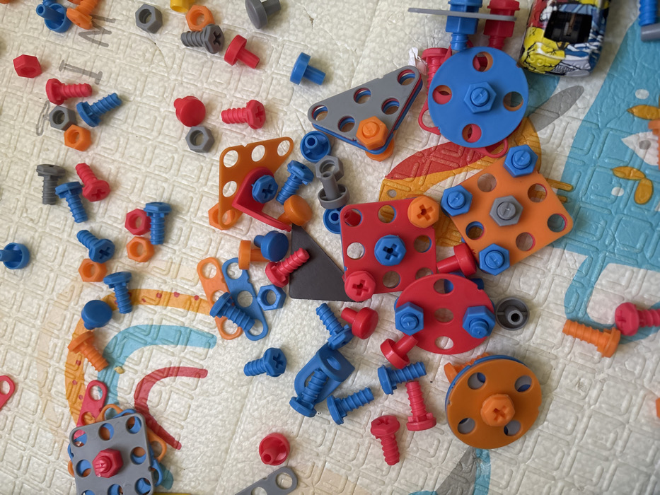 - "This image, captured within the city of Sisian, Armenia, presents a top-down, close-up view of numerous plastic toy construction components scattered across a light-colored foam play mat" by FM-4QNTW2, licensed under CC BY 4.0