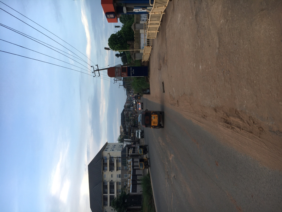 The image depicts a street scene in Nkpor, Nigeria, under an overcast sky at what appears to be either dusk or dawn