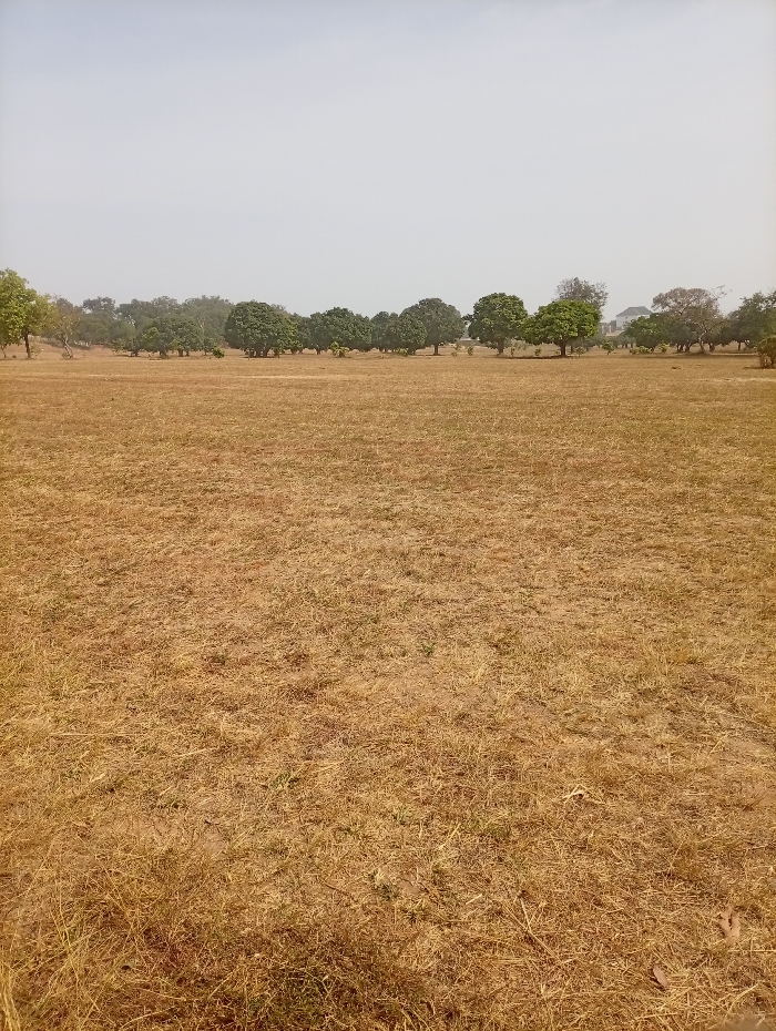 The image displays an expansive outdoor landscape, consistent with an open field or parkland in Jos, Nigeria