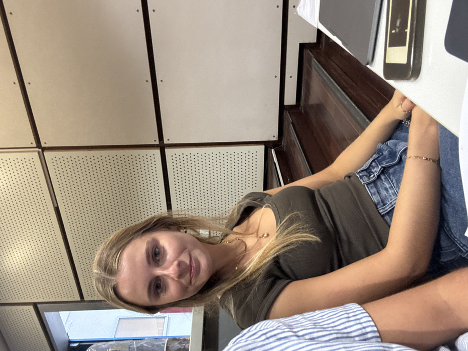 - "The image captures a young, light-skinned female with long blonde hair, wearing a dark olive-green ribbed top and blue denim jeans, seated and looking directly at the camera with a faint smile" by FM-YQRt52, licensed under CC BY 4.0