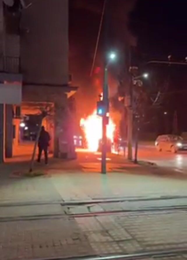 fire burning intensely on a city street at night